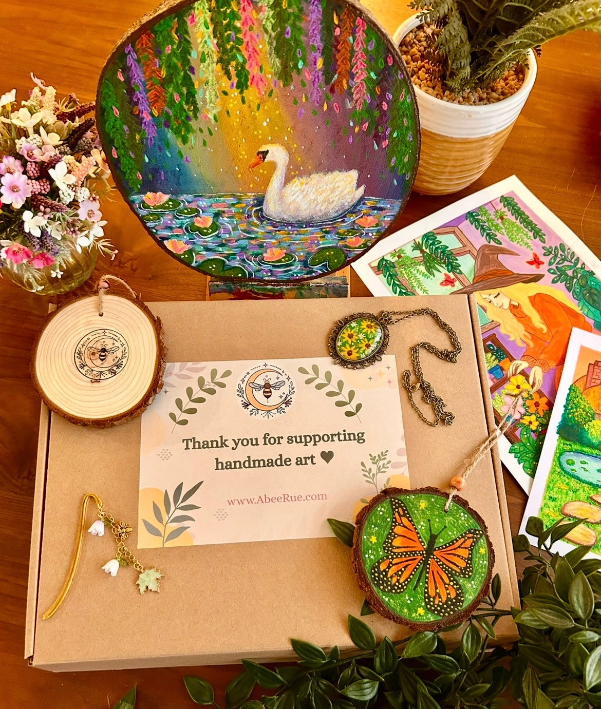 I’m Abee, an artist and maker from the UK, and I create original acrylic paintings on wood, handmade jewellery, bookmarks and more! All inspired by the beauty of nature, everyday magic, and the simple joys of life.