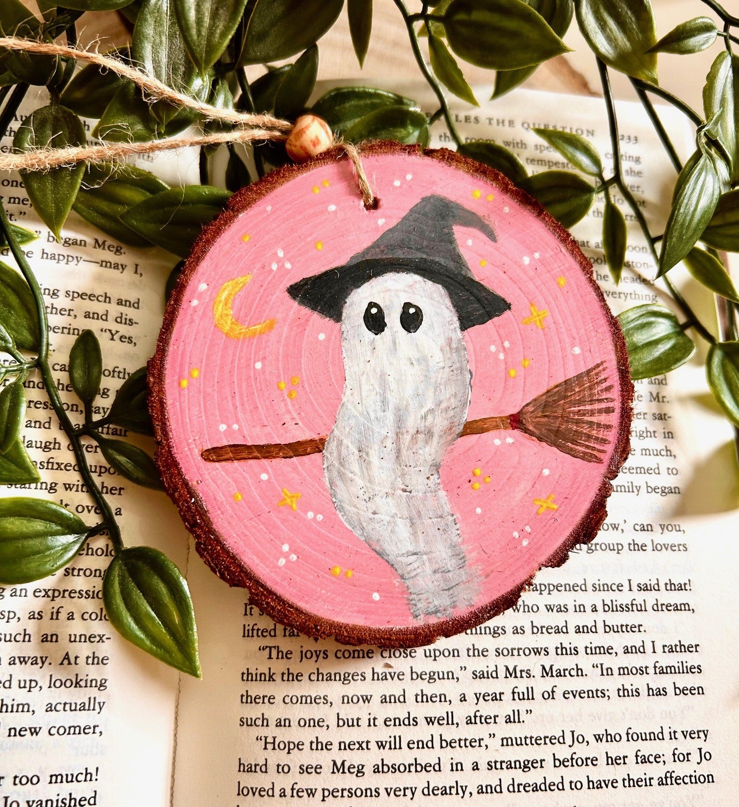 👻Bring a little ghostly charm to your autumn decor with this hand-painted wooden slice ornament.