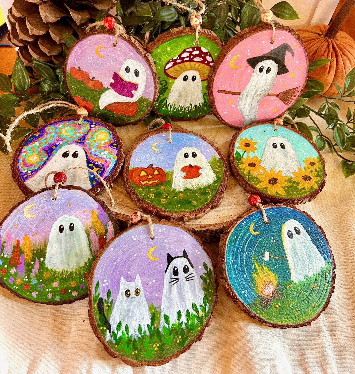 Discover Abee Rue’s hand-painted wooden ornaments — small, original artworks on natural...